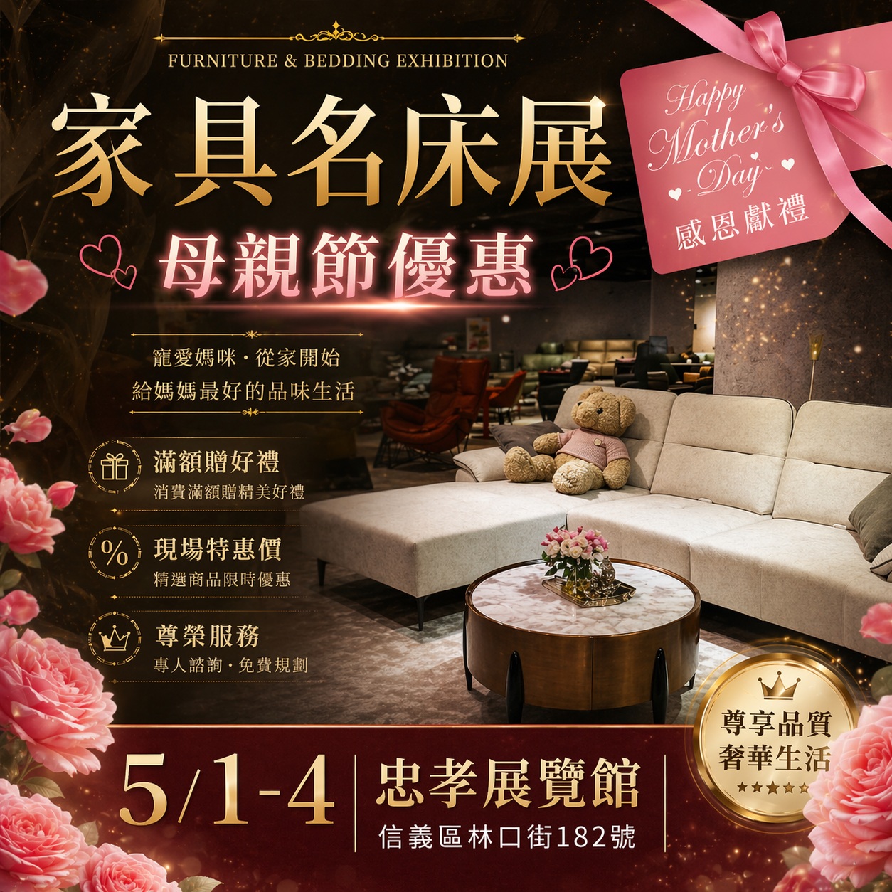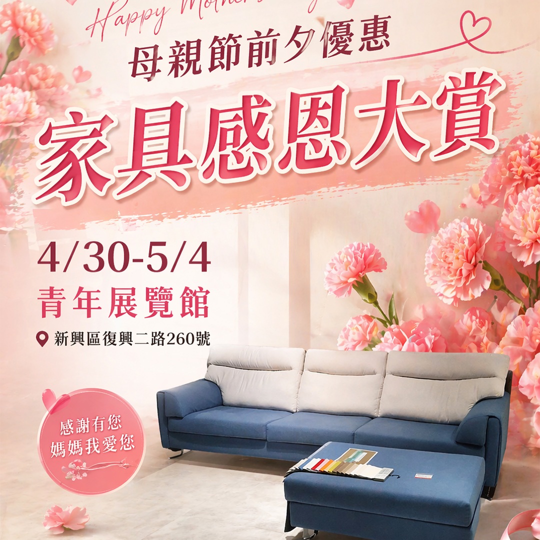 感恩推出【母親節專案】現場訂高級恆溫電動按摩調整床,當場『送10萬』獎很大,限量限時優惠名額有限。成家補助最高3000萬舊換新專案,配合多項優惠措施推出【青年珍愛成家專案】最低補助100萬,舊換新家具高價補貼回收,全館優惠再加碼2000元補助400元,床墊舊換新(降價無底線)下殺,優惠再加碼再補助,折舊最低5000元,購新床最高補助35000元殺很大,用完為止,機會難得不可錯過,買家具就要買的安心用的放心!全面一折起出清,參觀來就送5000元消費卷,再爽快優惠買家電抽百萬紅包!